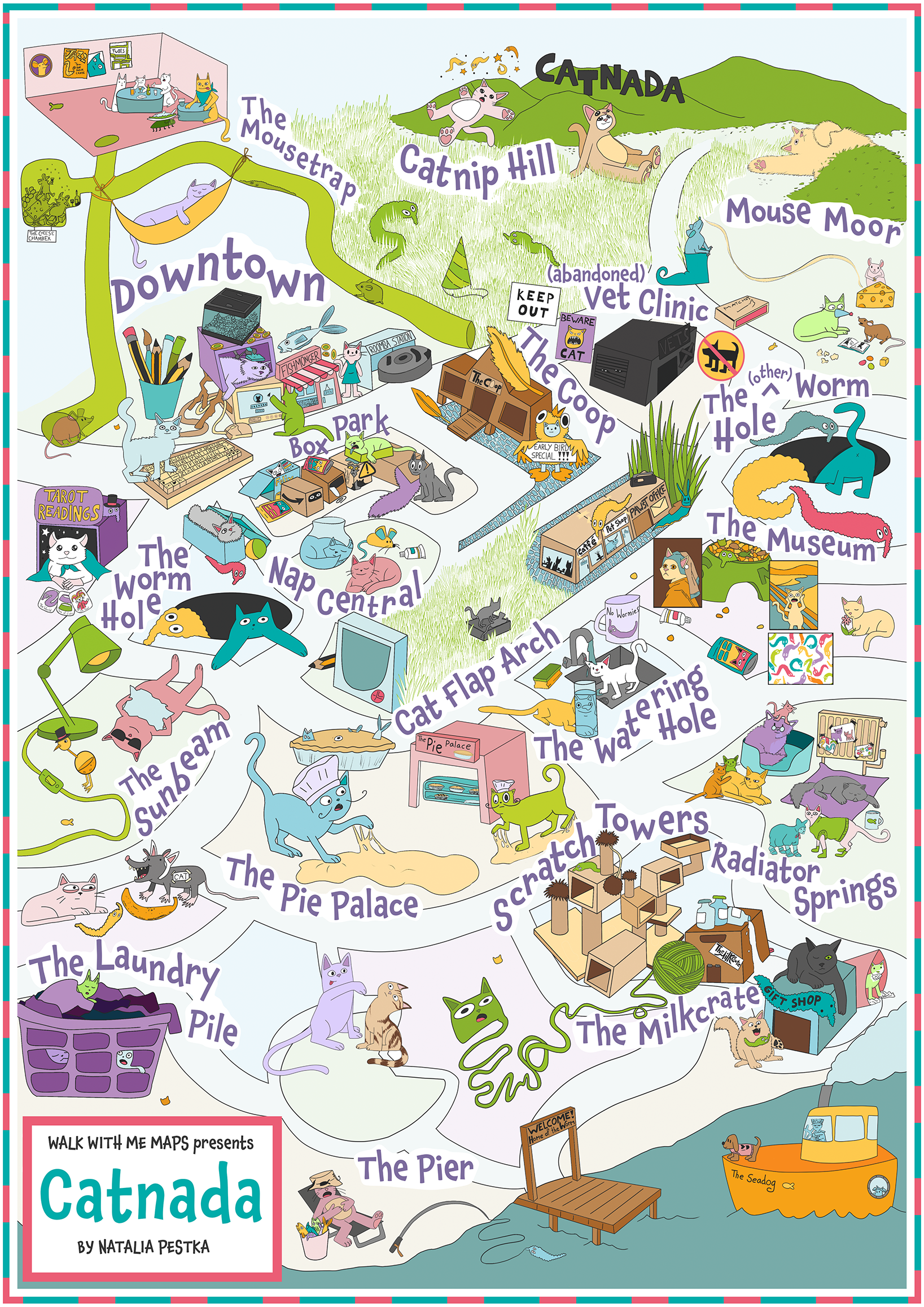 The brief was to create a map of a real or fictitious place that was significant to you. I created a map of a place that (unfortunately) does not exist. It's filled with one of the best things: cats!